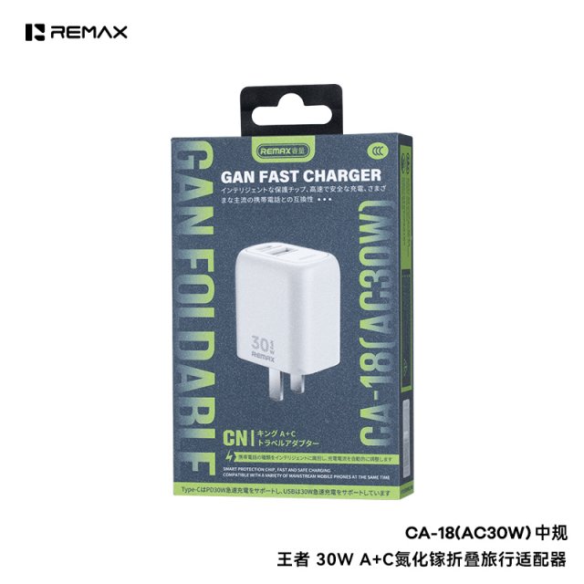睿量 王者 20W A+C旅行适配器 CA-18(AC20W) 轻薄小巧,方便携带;USB+Type-C双口快充 Type-C支持PD20W快充,USB支持18W快充 智能识别手机类型,自动调整充电电流 安全不伤设备,支持过流过压过温欠压短路等保护 外壳采用PC料,防火,耐摔经久耐用