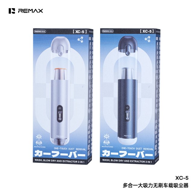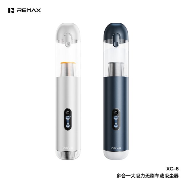 REMAX睿量 多合一大吸力无刷车载吸尘器 XC-5 涡轮增压主流电机,搭载高速马达,多重顶配升级 三档吸力任意切换,吸/吹/抽三合一,灰尘碎屑一吸即净 大容量电池,超长久续航,配备警示灯/照明灯 双层滤网,杜绝漏尘,超大集成仓,一键倒尘,可水洗海帕,重复使用 无线设计,方便携带,铝合金机身,更显质感,三重降噪,体验感拉满
