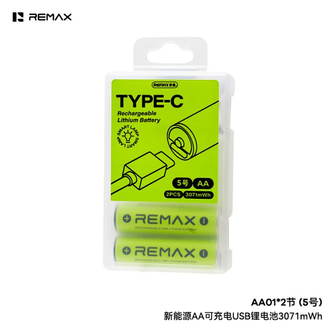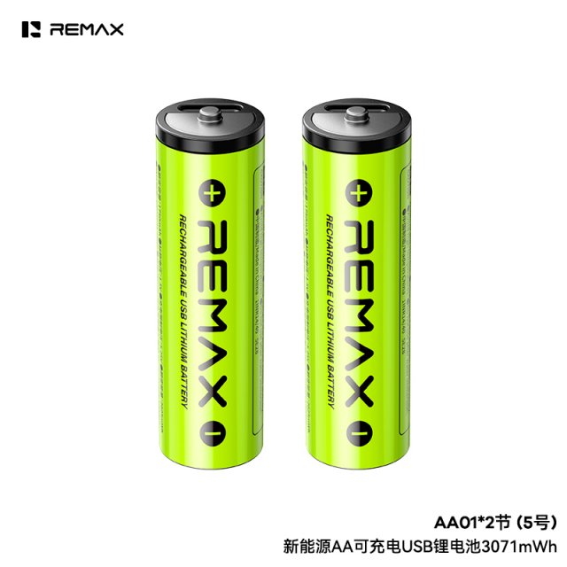 REMAX睿量 新能源AA可充电USB锂电池3071mWh AA02 1.5V恒压 无记忆效应 循环使用1000次 1.5小时充满80% 防漏设计 智能IC 保护I