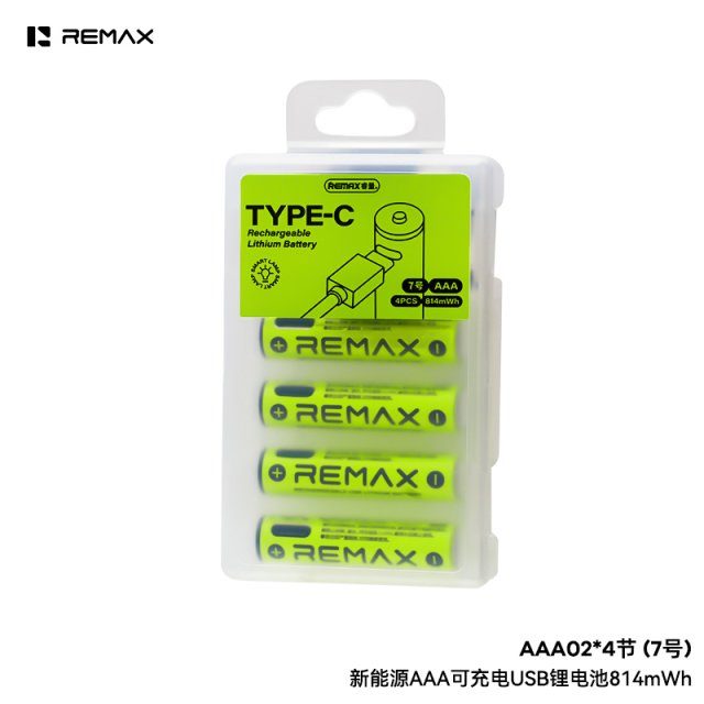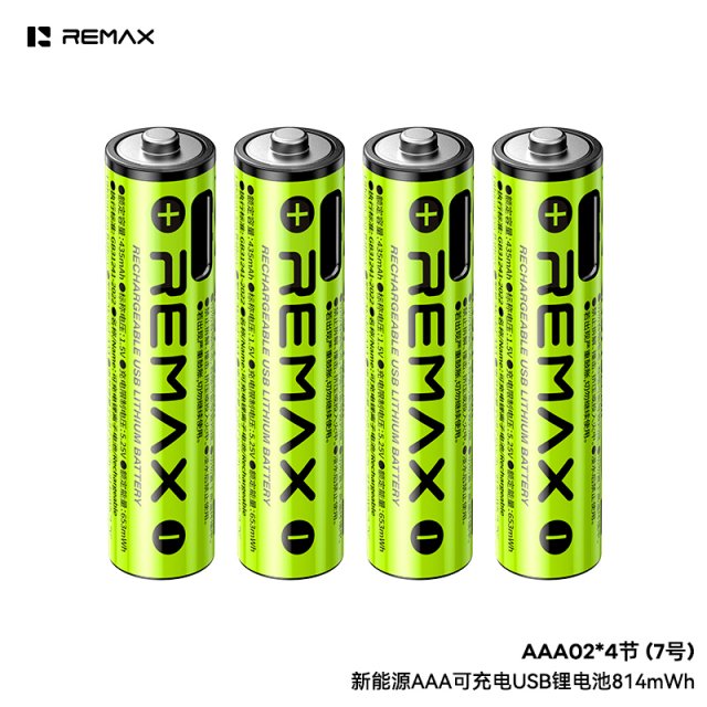 REMAX睿量 新能源AA可充电USB锂电池3071mWh AA02 1.5V恒压 无记忆效应 循环使用1000次 1.5小时充满80% 防漏设计 智能IC 保护I