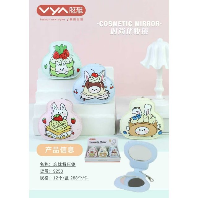 卡通创意造型车缝纽扣镜随身化妆镜便携折叠迷你口袋时尚化妆镜
