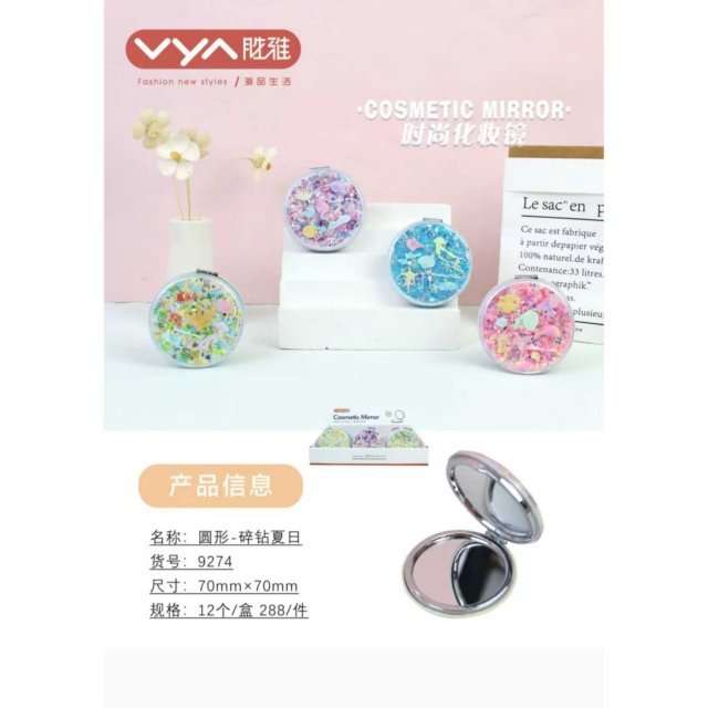 可爱卡通印图美甲套装纽扣设计折叠便携口袋化妆镜储物镜手持镜
