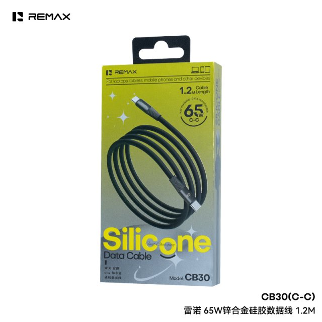 REMAX睿量 雷诺 30W锌合金硅胶数据线CB30(C-L) 1.2M 锌合金外壳,高硬度抗氧化,经久耐用 硅胶线材质,柔软亲肤,彰显质感,轻松回弹,拒绝缠绕 最大输出PD30W快充,支持平板,手机等设备快充 广泛兼容,支持充电、数据传输