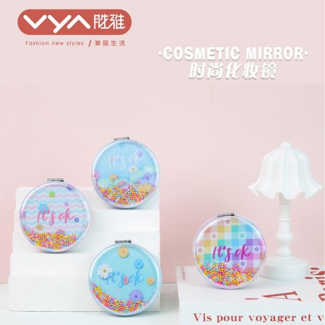 大圆漂浮小镜子便携小清新卡通折叠蝴蝶漂浮镜手持少女心随身镜