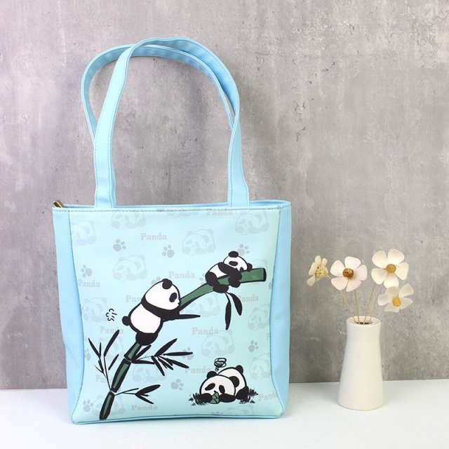 国风熊猫图案折叠便携化妆镜双面手持随身镜文创商品挂包镜