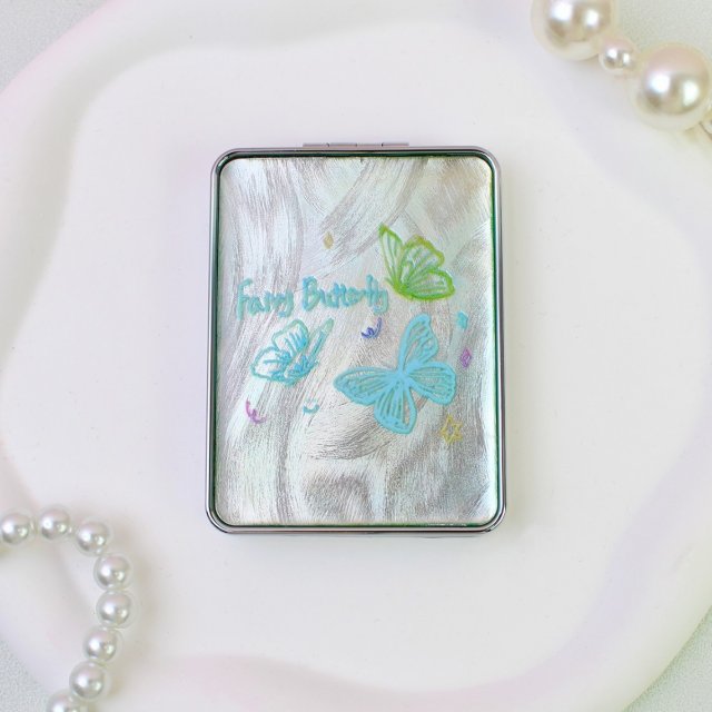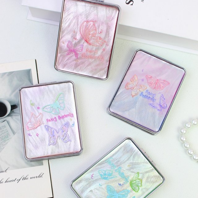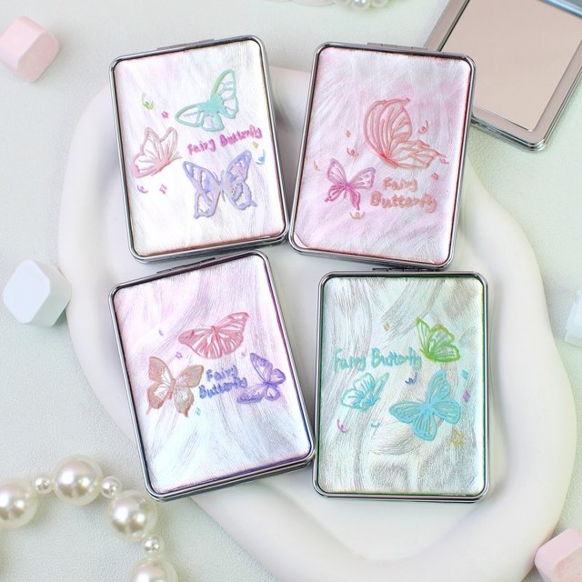 少女心蝴蝶结菱格纹折叠台镜便携补妆镜 ins风随身化妆镜多色可选