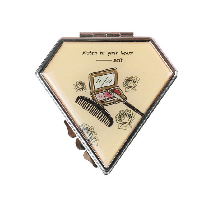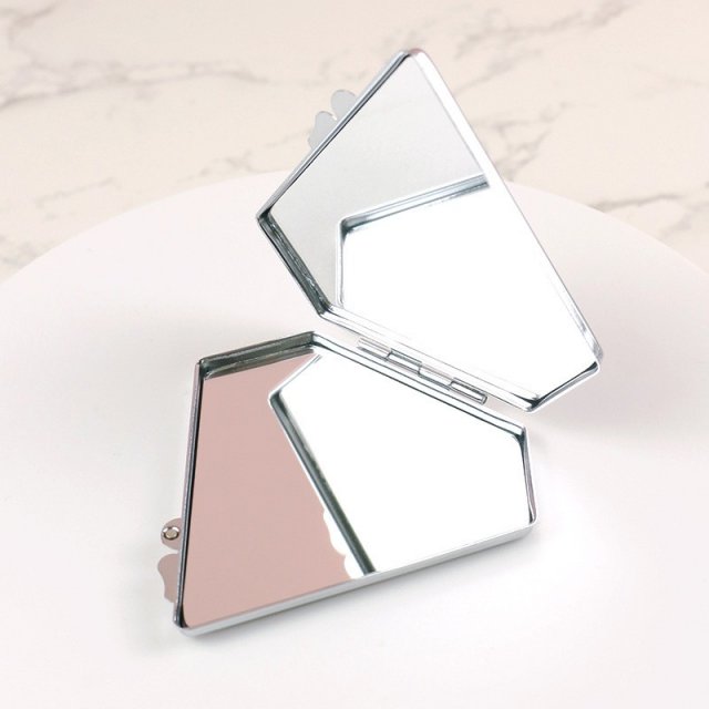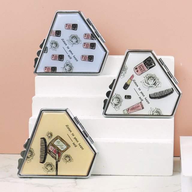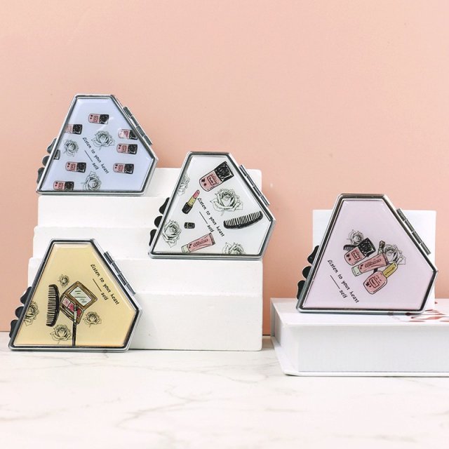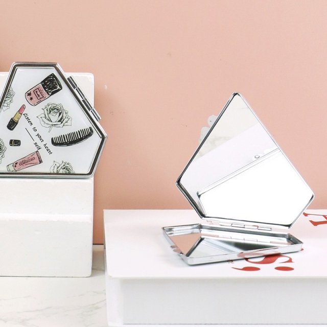 新款正方花瓣珍珠贴饰甜美时尚双面折叠化妆镜便携镜手持镜便携镜