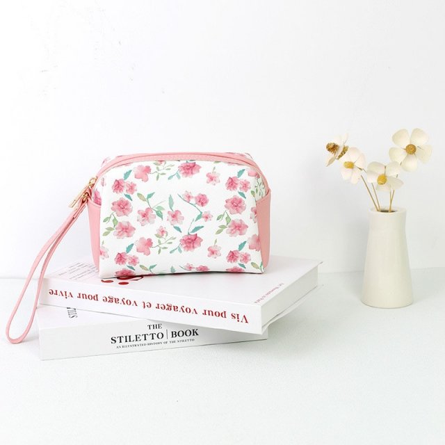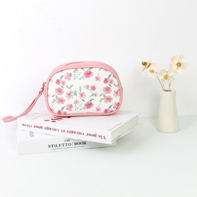 卡通甜美圆形镜随身pu皮圆形化妆镜便携学生女折叠小镜子口袋镜