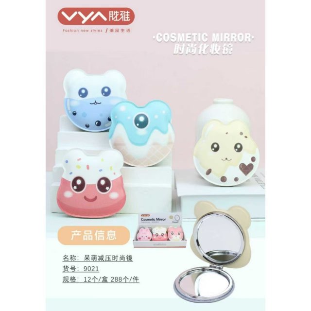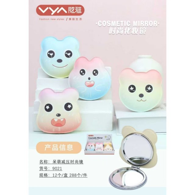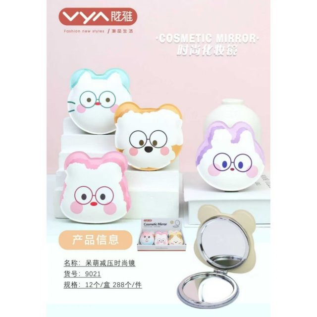 卡通甜美圆形镜随身pu皮圆形化妆镜便携学生女折叠小镜子口袋镜