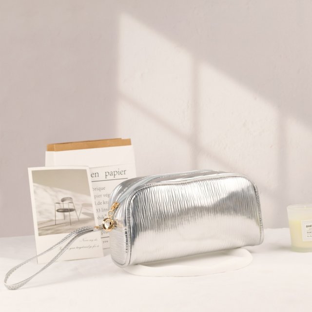 清新粉色小碎花PU大容量拉链手提洗漱包化妆包手提包便携收纳包