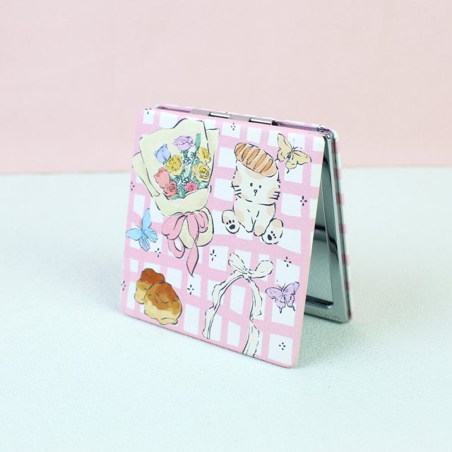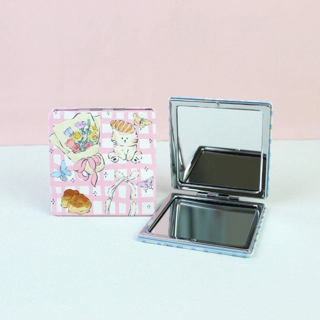 卡通创意造型车缝纽扣镜随身化妆镜便携折叠迷你口袋时尚化妆镜