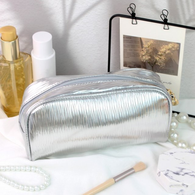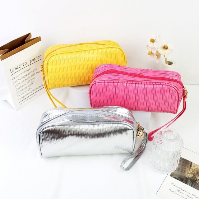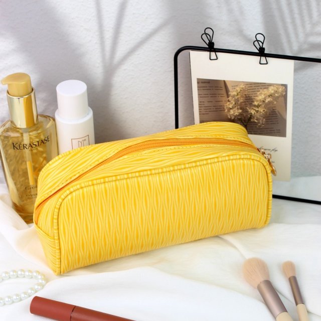 时尚奶油黄晕染纹路拉链大容量便携轻便化妆收纳洗漱包手拿包