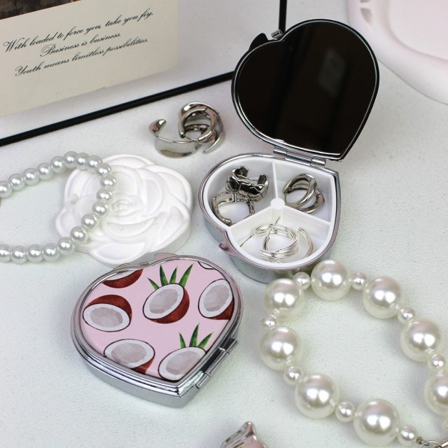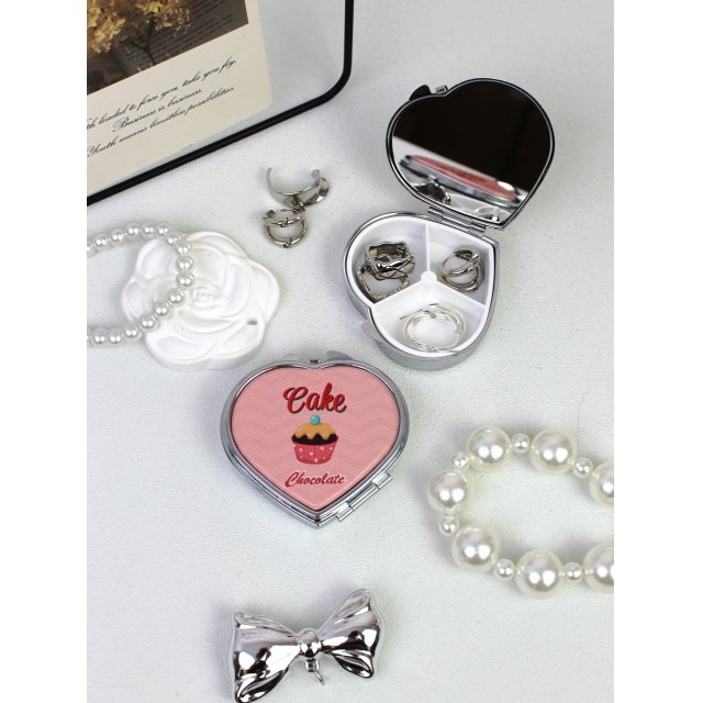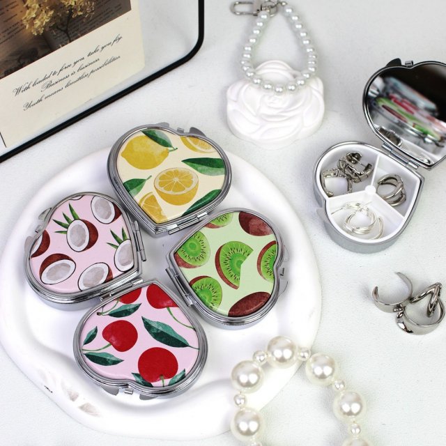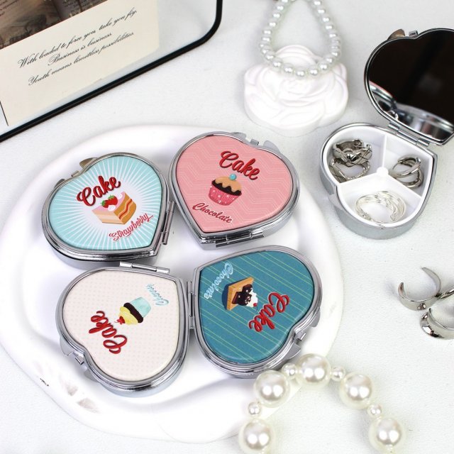 可爱卡通圆形流沙贴饰桌面便携台镜高清化妆镜折叠台镜宿舍台镜