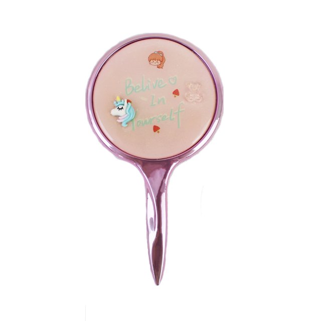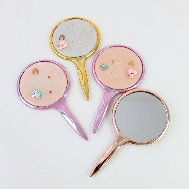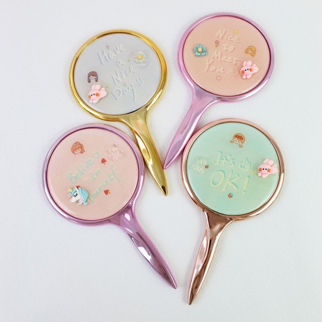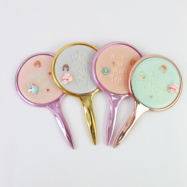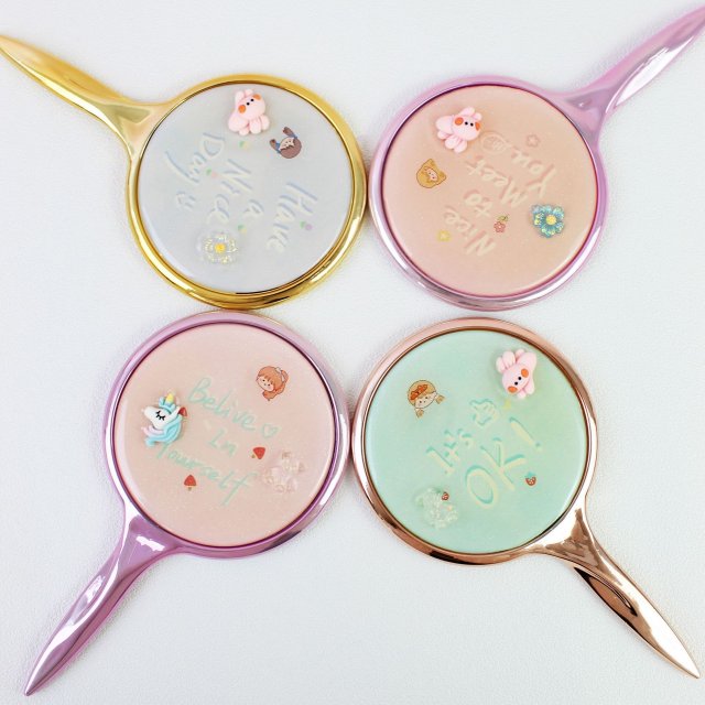 可爱卡通图案长方车缝流沙贴饰化妆镜折叠双面可翻盖小镜子时尚镜