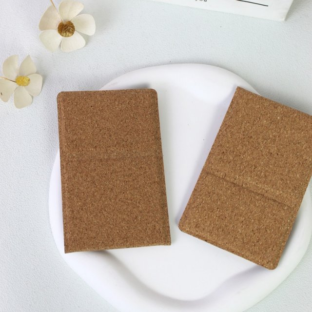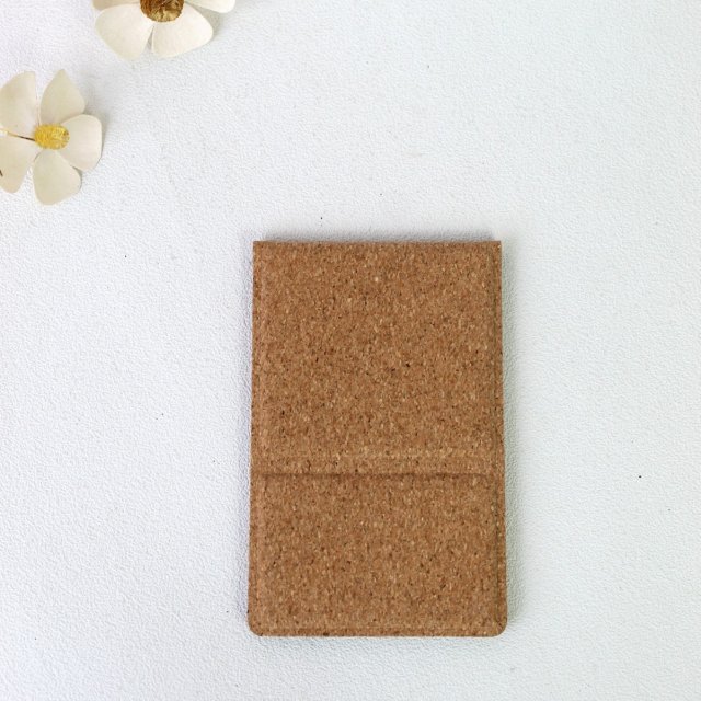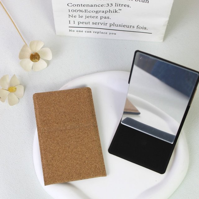 简约时尚软木质感长方便携口袋折叠高清化妆镜