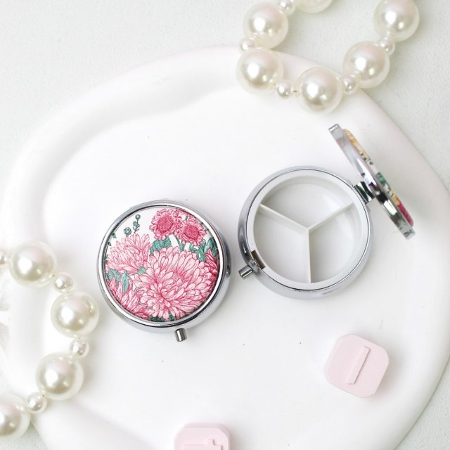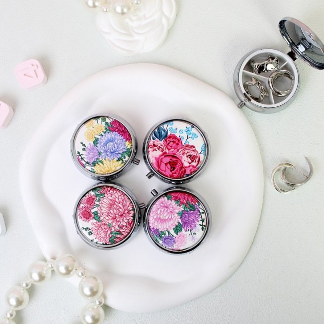 水波纹珍珠贴饰简约高级双面便携折叠化妆镜手持镜口袋镜