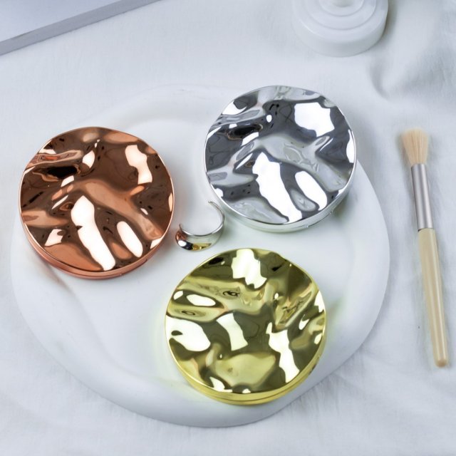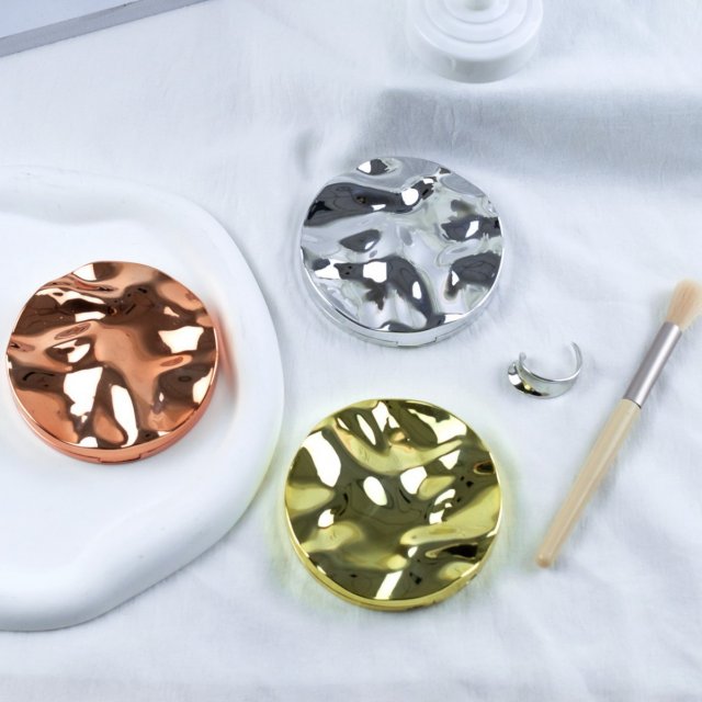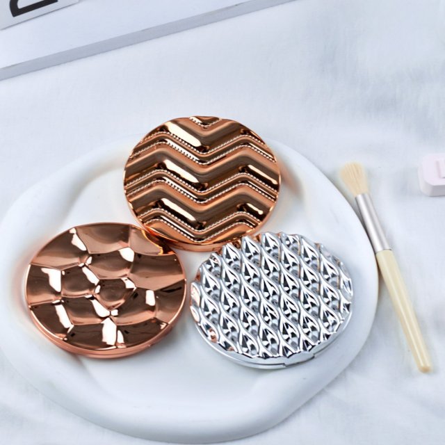 INS风简约高级水波纹便携高清化妆镜口袋镜手持双面折叠镜子