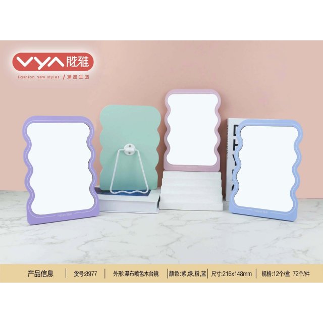 INS风简约高级水波纹便携高清化妆镜口袋镜手持双面折叠镜子