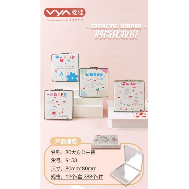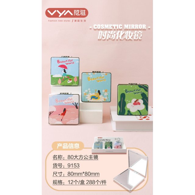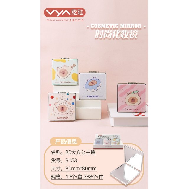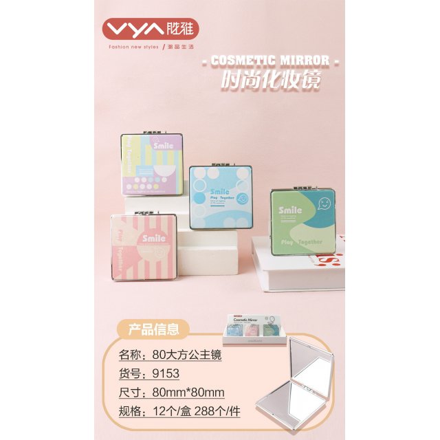 欧美时尚裂纹正方PU双面便携化妆高清小镜子批发镜子跨境