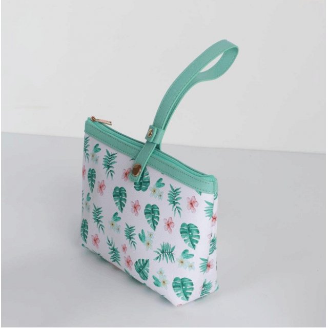小清新绿色花卉系列化妆包手提包零钱包斜挎包旅行洗漱包批发包包