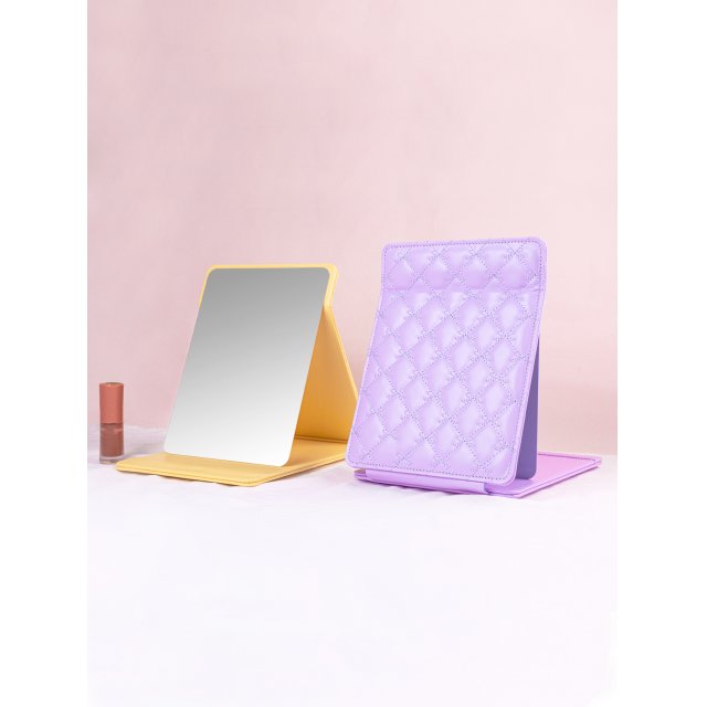 正方花瓣珍珠贴饰甜美时尚双面折叠化妆镜便携镜手持镜便携镜