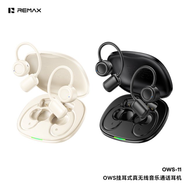 REMAX睿量 OWS挂耳式真无线音乐通话耳机 OWS-11 悬浮式挂耳结构,单耳仅重约6g,实现全天无感佩戴 开放式佩戴,随时聆听周围声音,更安全 快速配对,开盖即连,连接稳定,超低功耗 触摸控制,轻松操控 APP智能操控,定位追踪,自定义EQ音效