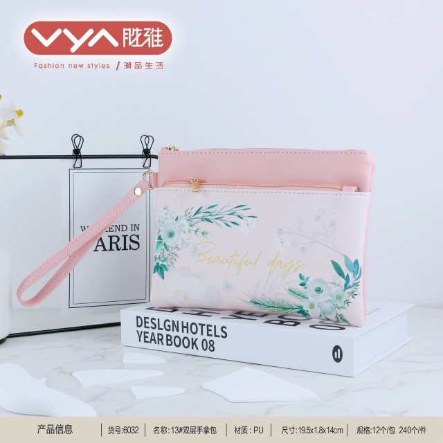 粉色大容量隔层旅行化妆包洗漱包斜挎包水桶包零钱包