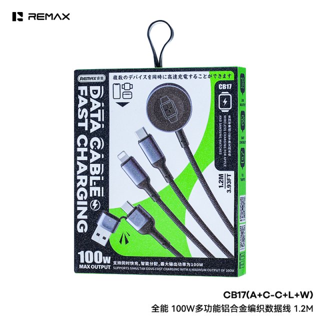 睿量 全能 100W多功能铝合金编织数据线 CB17(A+C-C+L+W) 1.2M 一线解锁全场景!打破设备充电局限,全能快充神器颠覆体验 充电 + 数据传输 + 手表无线充三合一,安卓、苹果设备秒速快充,告别多线缠绕烦恼 2.5W无线充科技:三星、苹果手表专属适配,强磁吸附,一贴即充 C-C 支持PD100W 大功率快充,支持笔记本电脑,平板,手机等设备快充 C-L支持PD30W快充,支持平