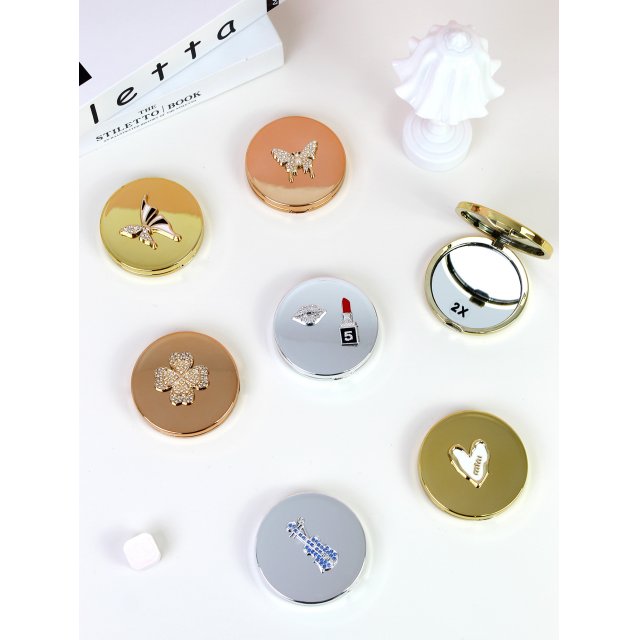 少女心蝴蝶结菱格纹折叠台镜便携补妆镜 ins风随身化妆镜多色可选