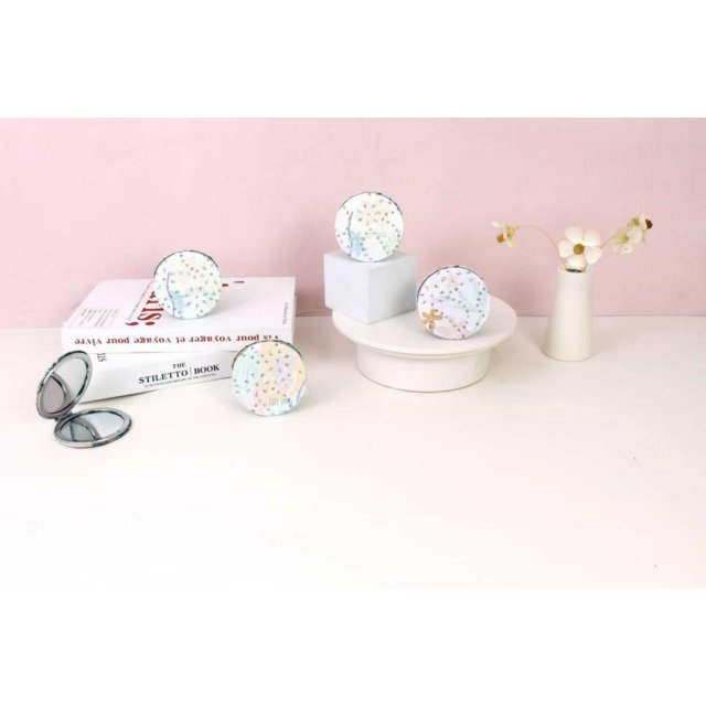 少女心镶钻便携化妆镜双面2倍放大随身补妆镜折叠小镜子口袋镜