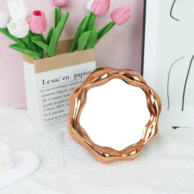 少女心蝴蝶结菱格纹折叠台镜便携补妆镜 ins风随身化妆镜多色可选