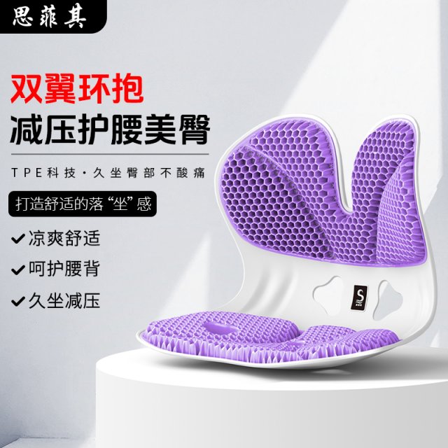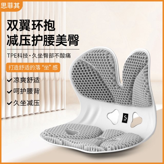 思菲其护腰坐垫久坐神器腰靠垫办公室蜂窝凝胶靠背一体人体工学椅