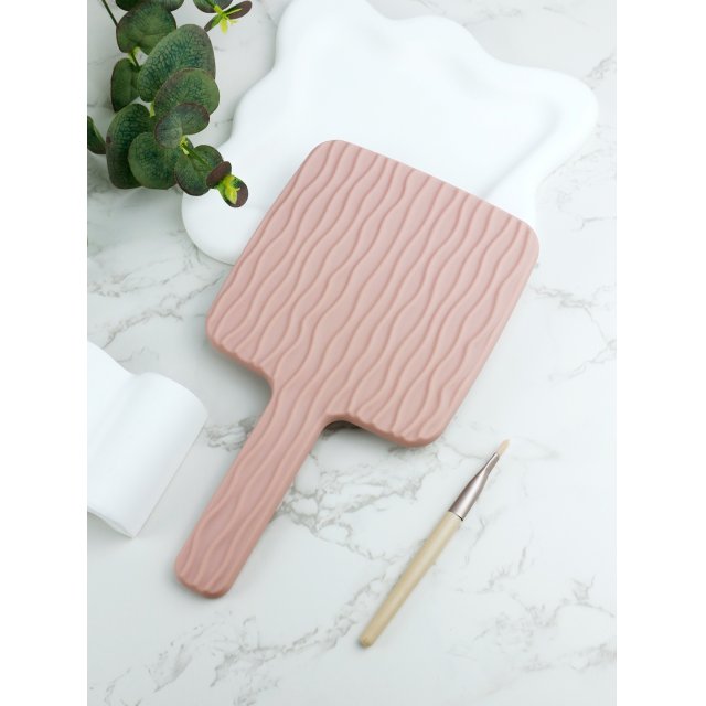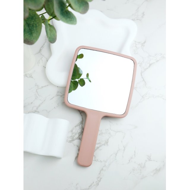 ins风钻石纹银色镜子手柄镜子迷你手持便携手拿化妆镜美容院镜子