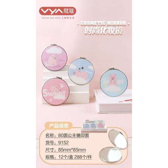 可爱卡通面包公主镜迷你圆形便携随身双面化妆镜时尚美妆小镜子