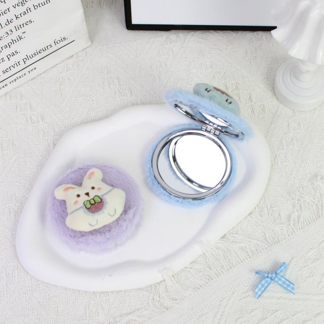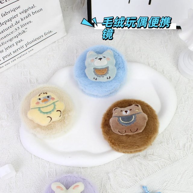 毛绒卡通双面毛绒镜便携随身镜 迷你可爱化妆补妆镜 ins风小镜子