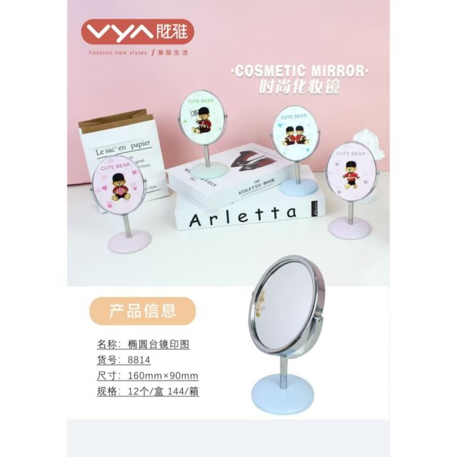 迷你桌面圆形旋转美妆镜学生宿舍台镜美容镜礼品镜批发文创店镜子