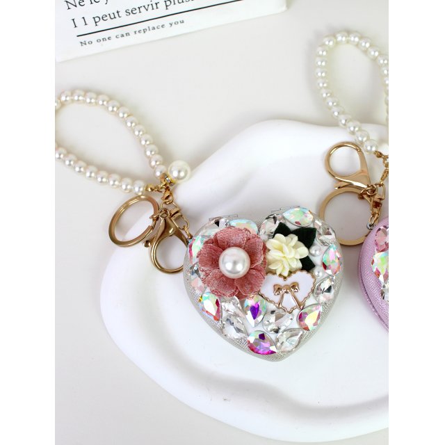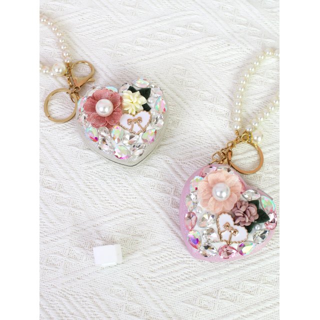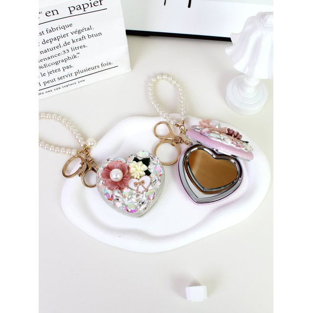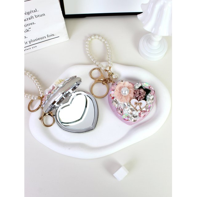 时尚电镀爱心随身携带化妆镜可爱便携折叠学生手持折叠双面镜