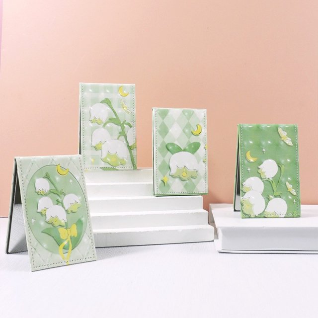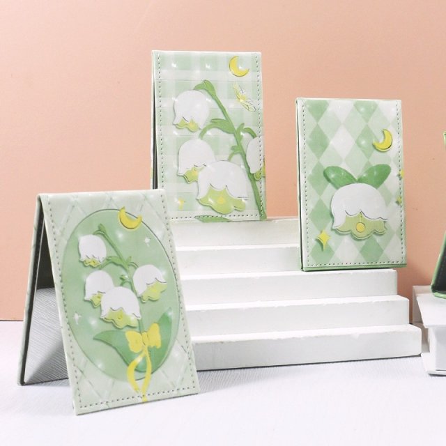 水波纹中方时尚奶油色ins风家用便携口袋化妆镜创意方形化妆镜