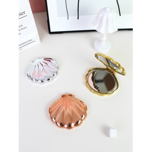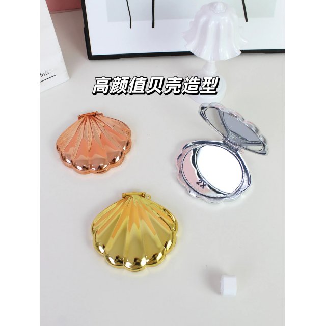 时尚电镀爱心随身携带化妆镜可爱便携折叠学生手持折叠双面镜