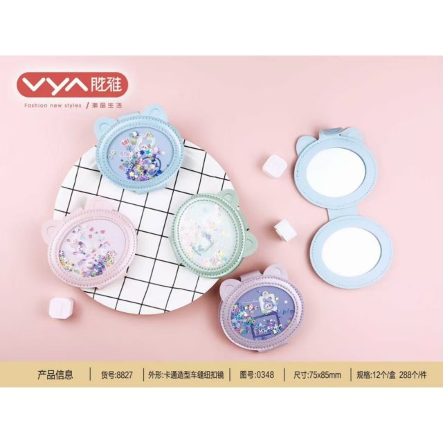 ins风外贸风圆形闪钻皮便携化妆镜随身少女心补妆镜迷你折叠镜