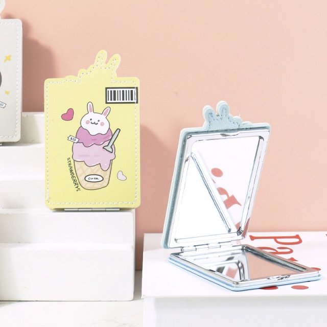 简约马卡龙色小动物化妆镜迷你可爱随身便携小面包镜少女心小清新
