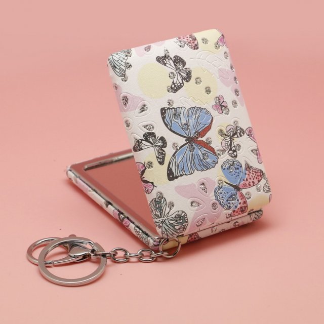 外贸复古风双面pu闪钻皮椭折叠随身小镜子手持美妆镜化妆镜补妆镜