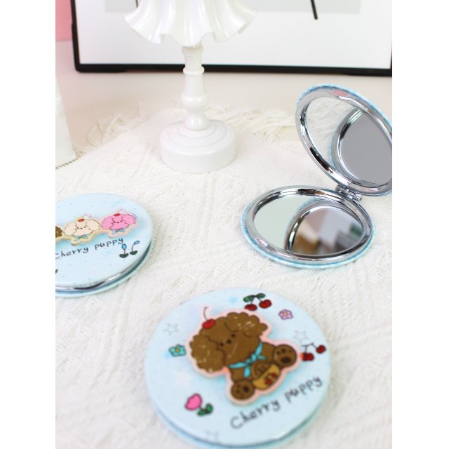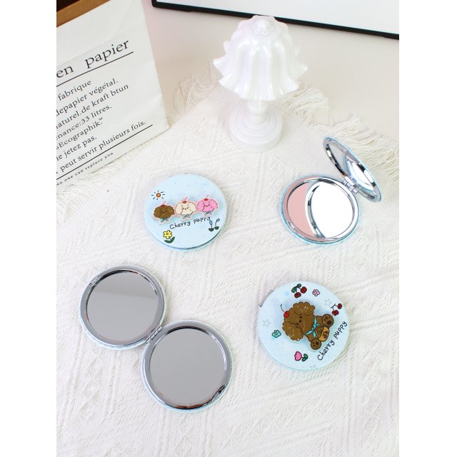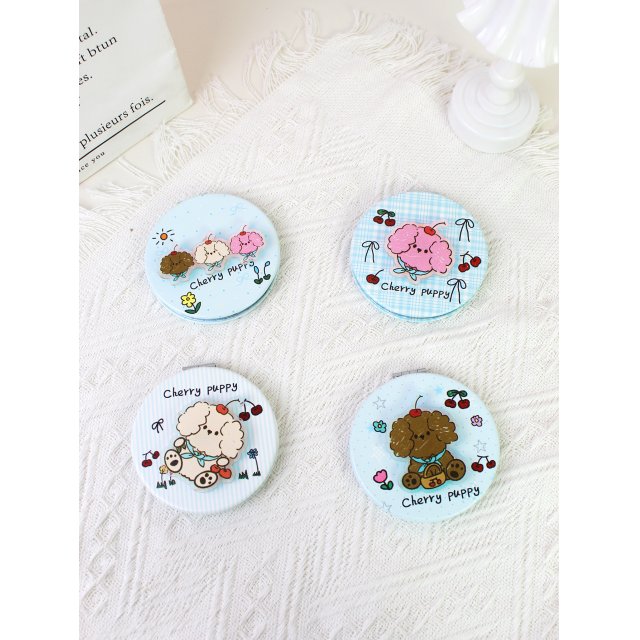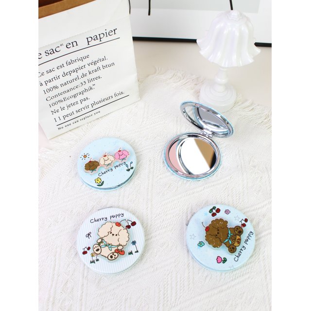 心形便携双面折叠化妆镜樱桃小狗挂包镜学生随身补妆小镜梳妆镜