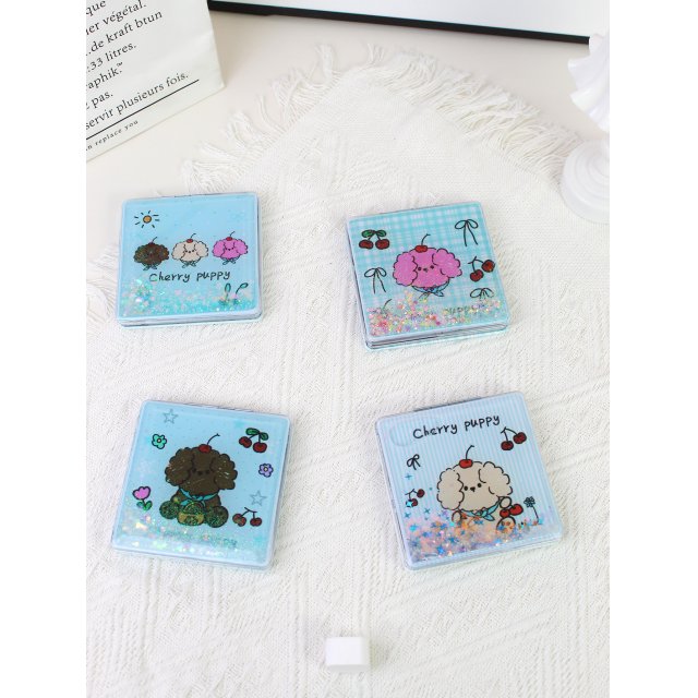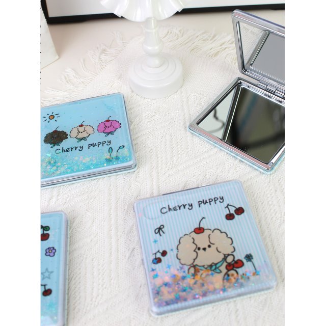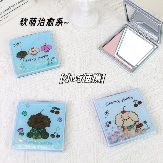 ins风樱桃小狗卡通折叠化妆镜迷你双面便携小镜子女生随身补妆镜