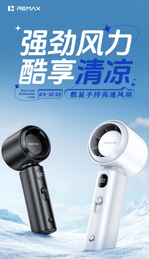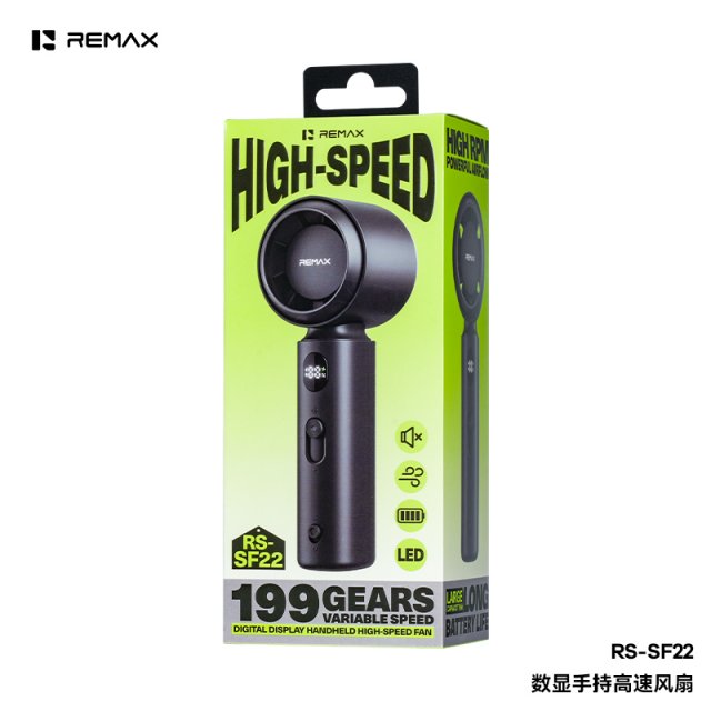 REMAX睿量 数显手持高速风扇 RS-SF22 大容量,长续航 高转速,风力强 数码管智能显示 199档可无极调速 小巧便携