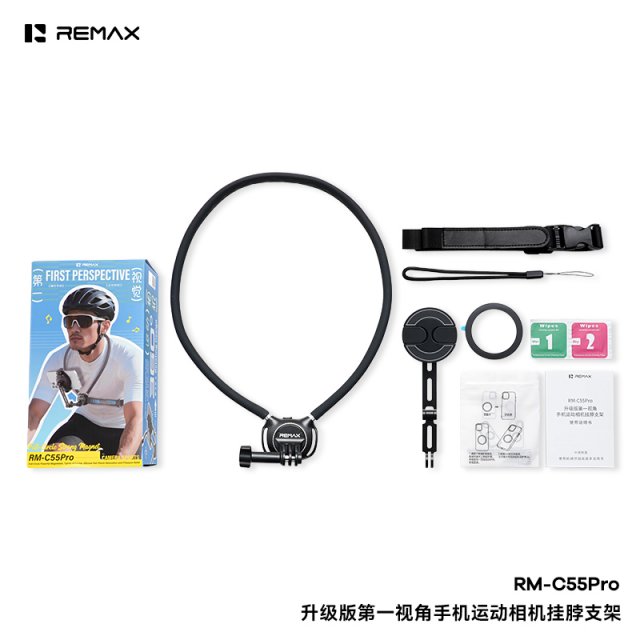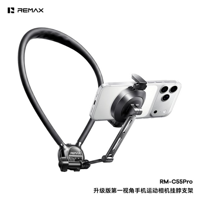 睿量 升级版第一视角手机运动相机挂脖支架 RM-C55 Pro 磁吸POV支架和折叠式的手机夹 整圈强磁;紧密吸附 让拍摄更便捷上下翻转360°旋转任意角度 硅胶垫减震减压 人体工程贴合柔中有刚舒适不易断 增稳防抖;动静皆宜;稳稳出片 多角度旋转