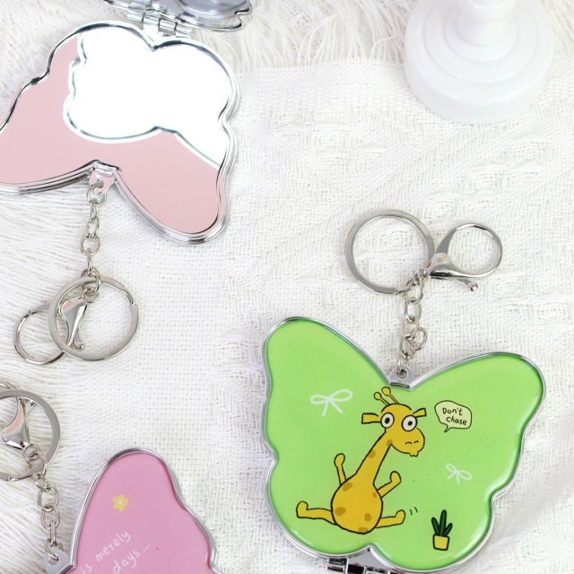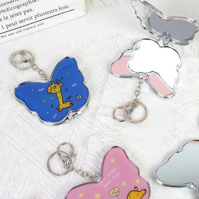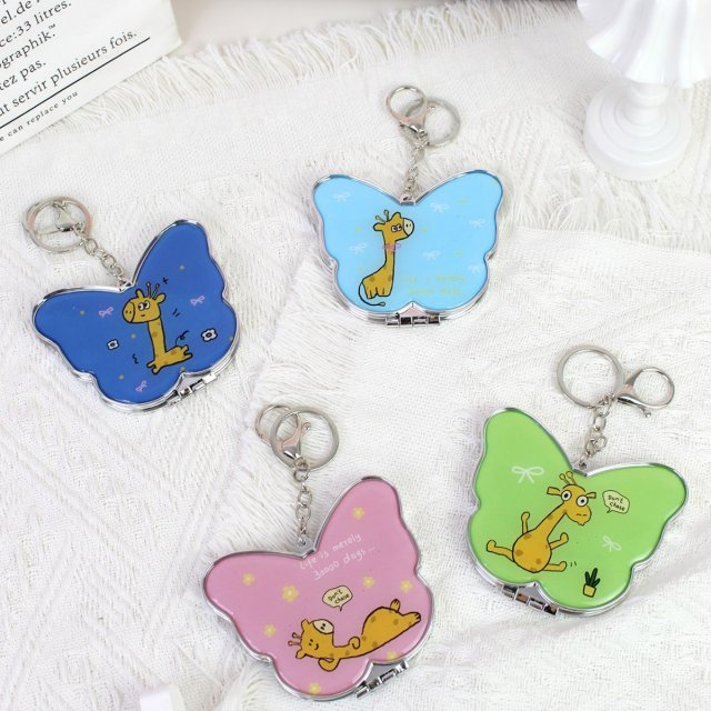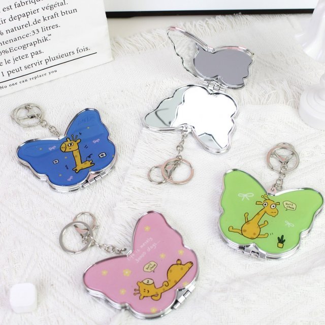 可爱卡通迷你折叠镜双面高清便携化妆镜补妆镜钥匙扣小镜子挂包镜