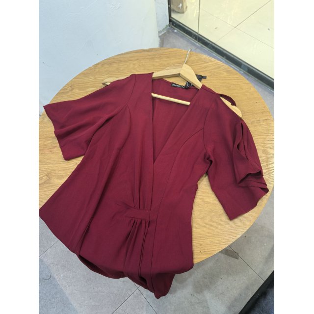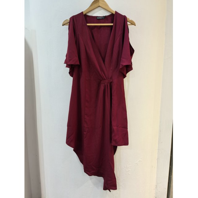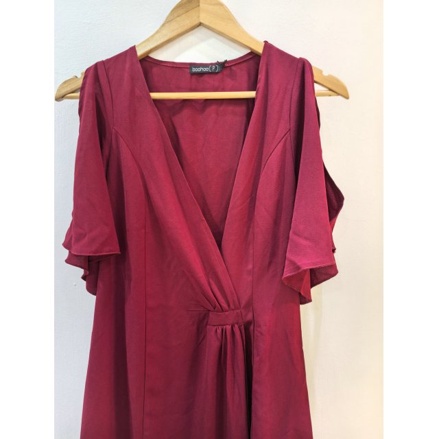 - 不规则雪纺短袖镂空露肩连衣裙