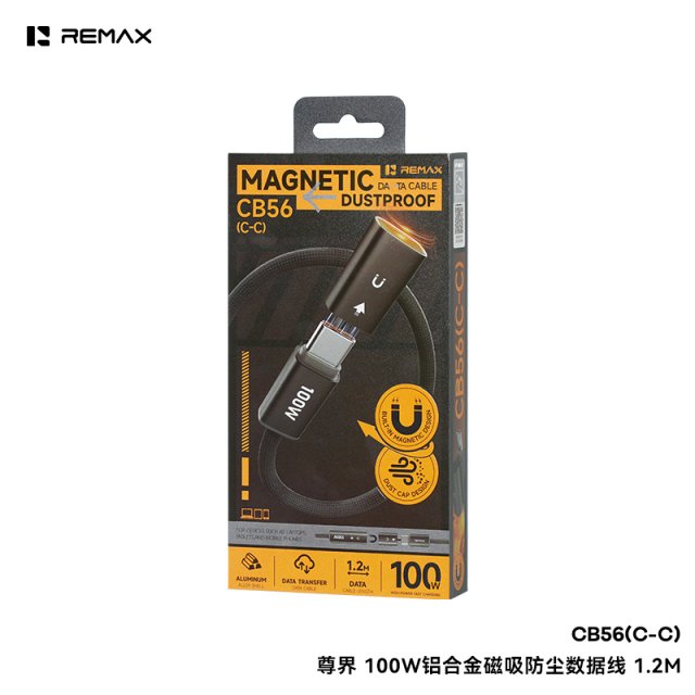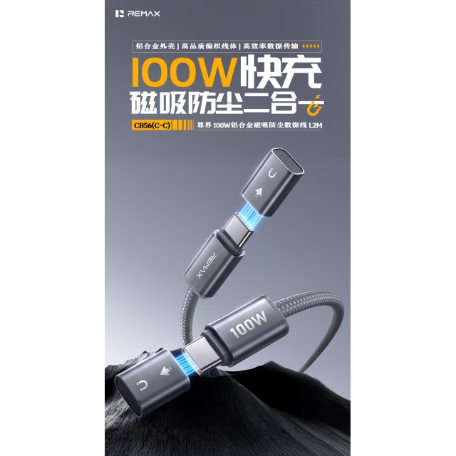 睿量 尊界 100W铝合金磁吸防尘数据线 CB56(C-C) 1.2M PD100W大功率快充,强悍功率输出 轻松适配笔记本电脑、平板、手机等多设备快充需求 告别低功率慢充焦虑,办公、出行补能高效快捷 高编织材质,强韧抗拉、耐弯折耐磨,日常拉扯 收纳无忧,使用寿命远超普通数据线,性价比拉满 自带防尘帽设计:接口配备专属防尘帽,紧密贴合隔绝灰尘 杂物,防止日常藏污纳垢,保护接口洁净,延长接口使用寿命